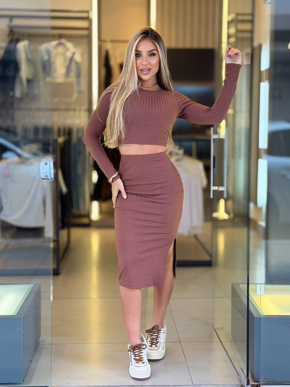 CONJUNTO CANELADO PREMIUM (MARROM)